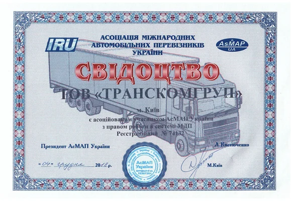 У 2018 році ми стали членами Асоціації міжнародних перевізників України (AsMAP UA), що підтверджує нашу відповідність галузевим вимогам та високим стандартам якості.